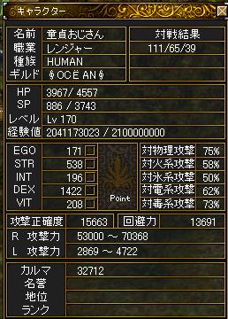 あとアレだLv170になりましたんでちょいとリアル優先のため隠居しまする。